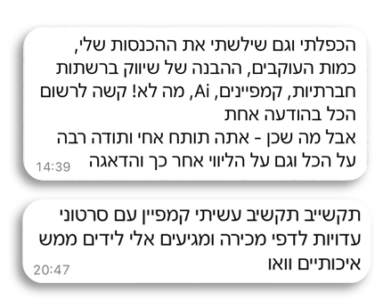 שקלטתי את הערך שלי – השיווק שלי הסתדר והפך להיות חד ומדיוק.
