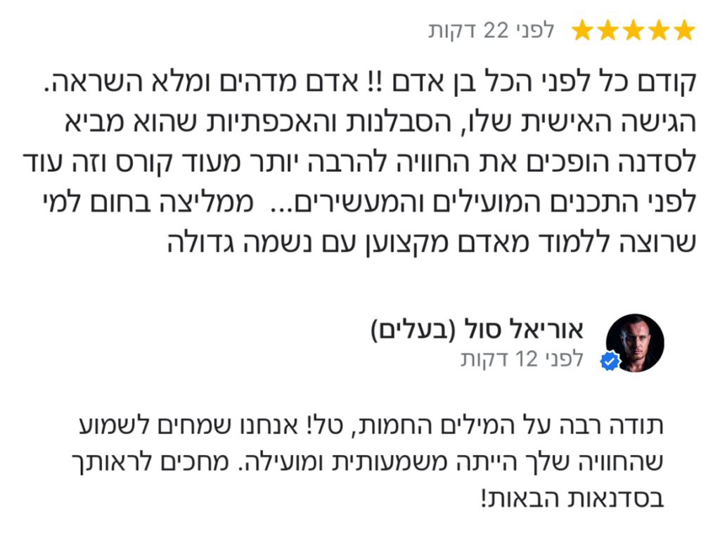 הנה טעימה מהקורס הפרונטלי בו אנחנו עובדים ביחד,